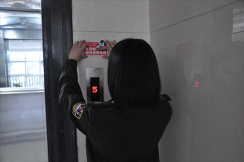 随着人民群众生活水平的提高,电梯的使用频率也逐渐增多,如果发生火灾时,群众盲目搭乘电梯,就会导致意外发生,由此可见电梯的消防安全工作不容小觑。为此,分局宣传人员以“5+2”的宣传模式,利用周末时间深入辖区各场所对“电梯消防安全提示牌”进行张贴。宣传人员先后来到燕山花苑小区、金海湾小区、金田大酒店、溢香国际大酒店、海逸酒店等各个场所,在张贴的同时,宣传人员还耐心细致地向各场所负责人详细说明了发生火灾时使用电梯所造成的意外事件和危害性,提醒其发生火灾时千万不要乘坐电梯。